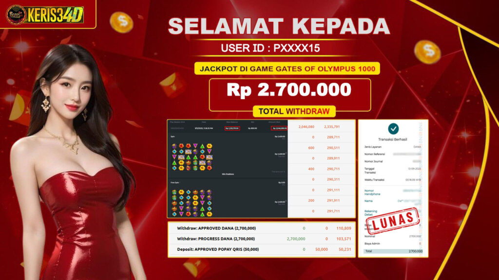 Setiap hari, member KERIS34D berhasil meraih jackpot besar dari berbagai provider slot ternama yang kami sediakan, seperti Pragmatic Play, Habanero, PG Soft, dan masih banyak lagi. Kami secara rutin menampilkan bukti screenshot atau rekapan kemenangan yang berhasil diraih, mulai dari kemenangan ratusan ribu hingga puluhan juta rupiah. Semua slip kemenangan ini kami hadirkan untuk membuktikan bahwa di KERIS34D, peluang menang itu nyata