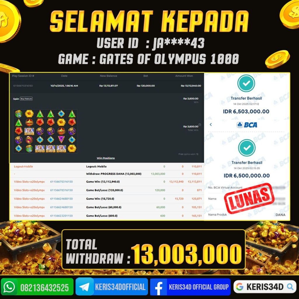 JACKPOT SLOT GACOR GATES OF OLYMPUS 14 OKTOBER 2025, Jackpot Slot Gacor, Kemenangan Slot, Bukti Kemenangan Slot, Kemenangan PRAGMATIC PLAY, Menang Slot online, Slot Gacor, Situs Aman Terpercaya, WD Berapapun Pasti DI Bayar Tuntas, Maxwin Slot Online.