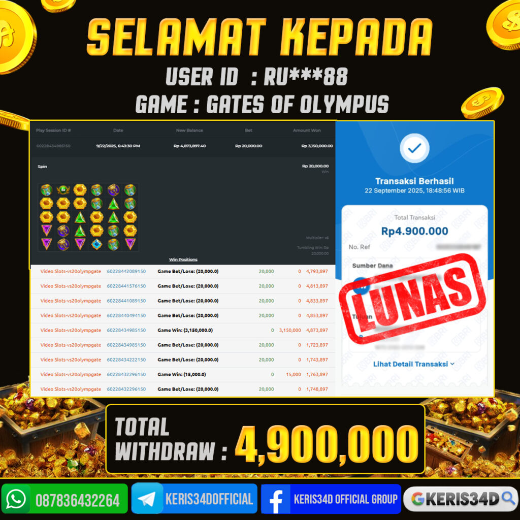 JACKPOT SLOT GACOR GATES OF OLYMPUS 22 SEPTEMBER 2025, Jackpot Slot Gacor, Kemenangan Slot, Bukti Kemenangan Slot, Kemenangan PRAGMATIC PLAY, Menang Slot online, Slot Gacor, Situs Aman Terpercaya, WD Berapapun Pasti DI Bayar Tuntas, Maxwin Slot Online.