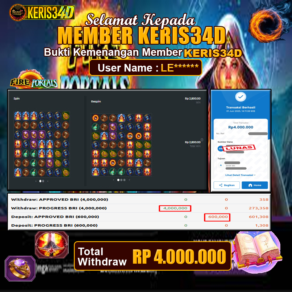TOTAL KEMENANGAN : Rp. 4.000.000
