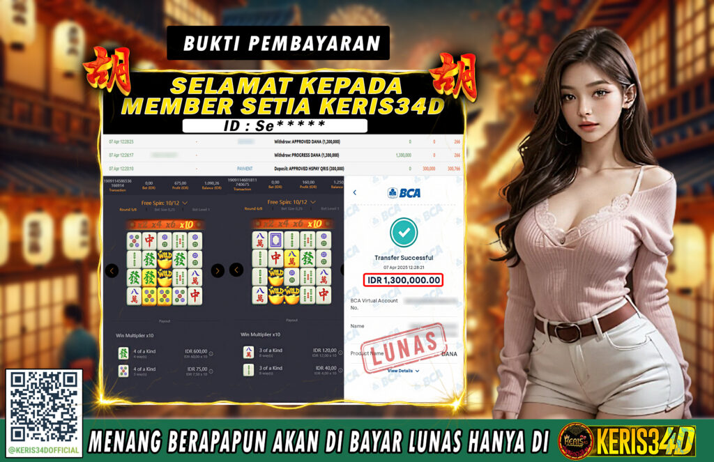 Setiap hari, member KERIS34D berhasil meraih jackpot besar dari berbagai provider slot ternama yang kami sediakan, seperti Pragmatic Play, Habanero, PG Soft, dan masih banyak lagi. Kami secara rutin menampilkan bukti screenshot atau rekapan kemenangan yang berhasil diraih, mulai dari kemenangan ratusan ribu hingga puluhan juta rupiah. Semua slip kemenangan ini kami hadirkan untuk membuktikan bahwa di KERIS34D, peluang menang itu nyata