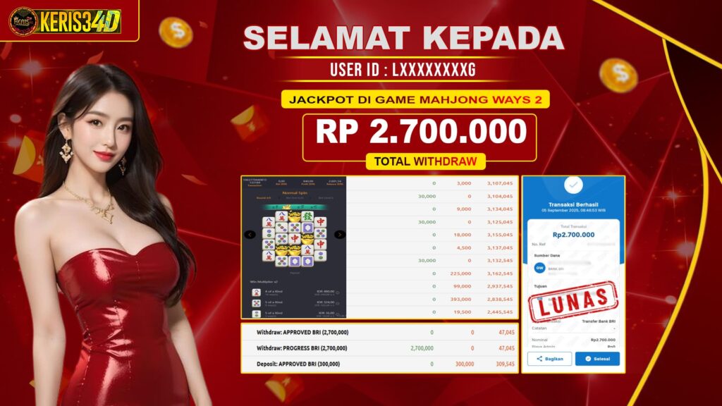 Setiap hari, member KERIS34D berhasil meraih jackpot besar dari berbagai provider slot ternama yang kami sediakan, seperti Pragmatic Play, Habanero, PG Soft, dan masih banyak lagi. Kami secara rutin menampilkan bukti screenshot atau rekapan kemenangan yang berhasil diraih, mulai dari kemenangan ratusan ribu hingga puluhan juta rupiah. Semua slip kemenangan ini kami hadirkan untuk membuktikan bahwa di KERIS34D, peluang menang itu nyata