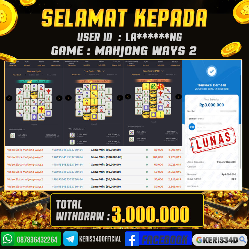 JACKPOT SLOT GACOR MAIN MAHJONG WAYS 2 25 OKTOBER 2025