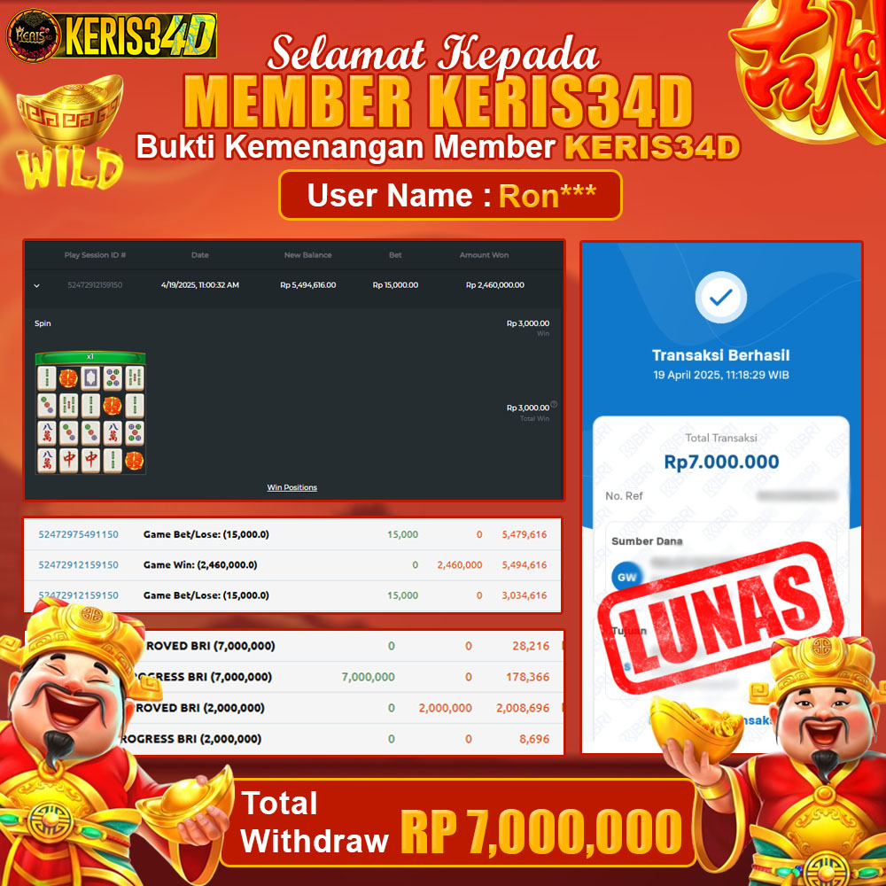 Setiap hari, member KERIS34D berhasil meraih jackpot besar dari berbagai provider slot ternama yang kami sediakan, seperti Pragmatic Play, Habanero, PG Soft, dan masih banyak lagi. Kami secara rutin menampilkan bukti screenshot atau rekapan kemenangan yang berhasil diraih, mulai dari kemenangan ratusan ribu hingga puluhan juta rupiah. Semua slip kemenangan ini kami hadirkan untuk membuktikan bahwa di KERIS34D, peluang menang itu nyata
