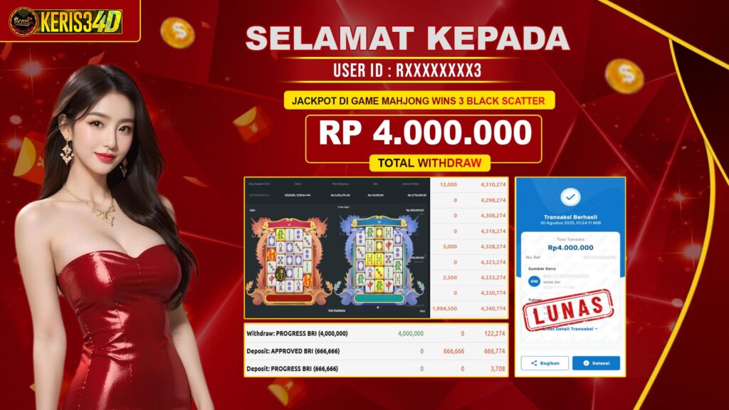 KERIS34D dikenal sebagai situs terpercaya yang selalu menghadirkan pengalaman bermain slot online yang aman, fair, dan berlisensi resmi. Di sini, kami tidak hanya sekadar memberikan janji, tapi bukti nyata berupa slip kemenangan yang dapat Anda lihat secara langsung.