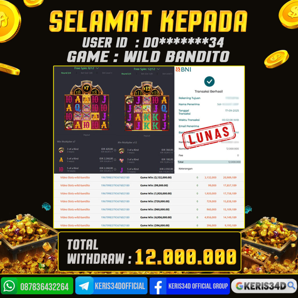 JACKPOT SLOT GACOR MAIN WILD BANDITO 17 SEPTEMBER 2025