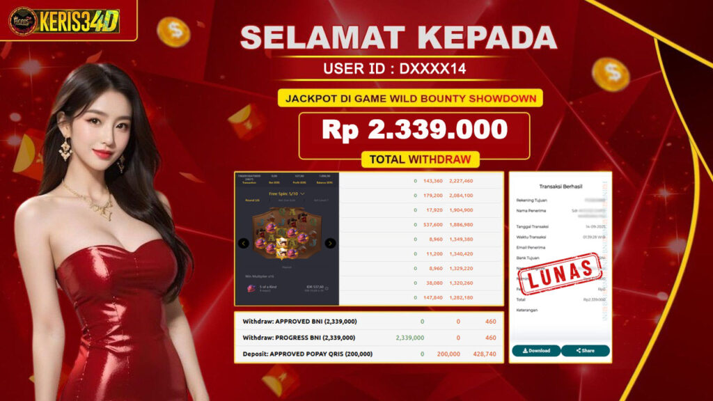 Setiap hari, member KERIS34D berhasil meraih jackpot besar dari berbagai provider slot ternama yang kami sediakan, seperti Pragmatic Play, Habanero, PG Soft, dan masih banyak lagi. Kami secara rutin menampilkan bukti screenshot atau rekapan kemenangan yang berhasil diraih, mulai dari kemenangan ratusan ribu hingga puluhan juta rupiah. Semua slip kemenangan ini kami hadirkan untuk membuktikan bahwa di KERIS34D, peluang menang itu nyata