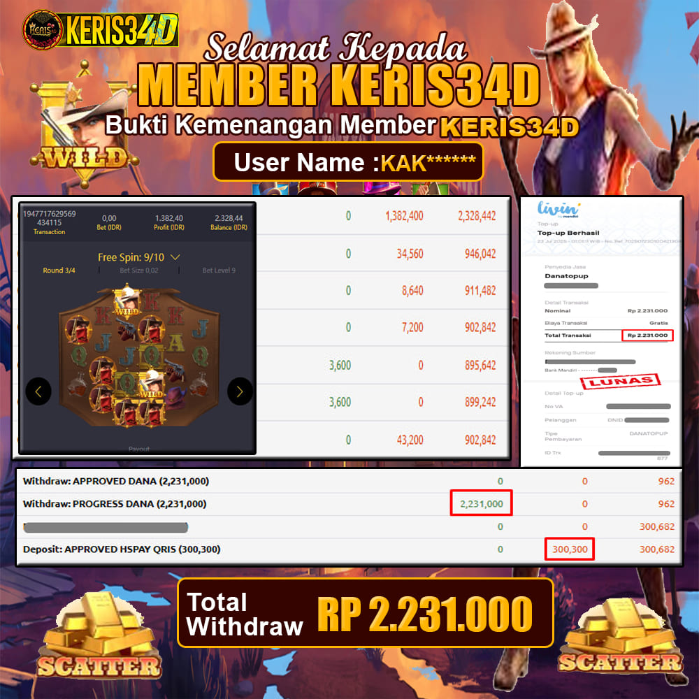 TOTAL KEMENANGAN : Rp. 2.231.000